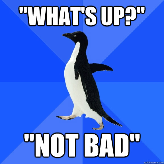 "WHAT'S UP?" "NOT BAD"