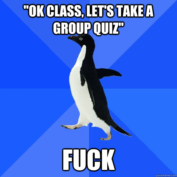 "OK class, let's take a group quiz" Fuck