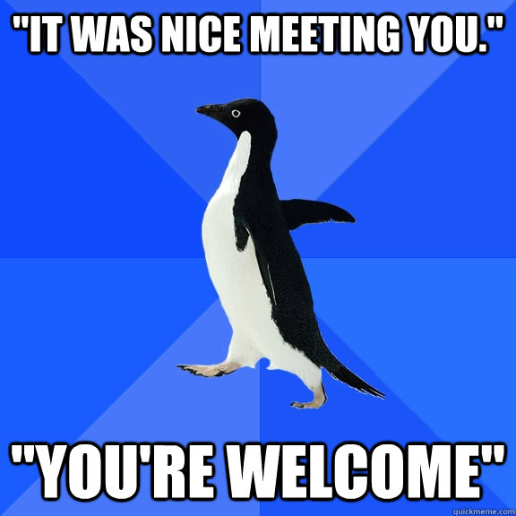 "It was nice meeting you." "you're welcome"