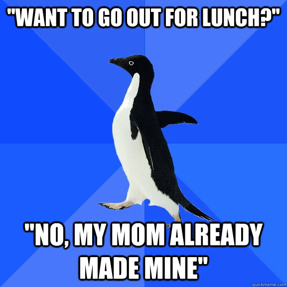 "Want to go out for lunch?" "No, my mom already made mine"