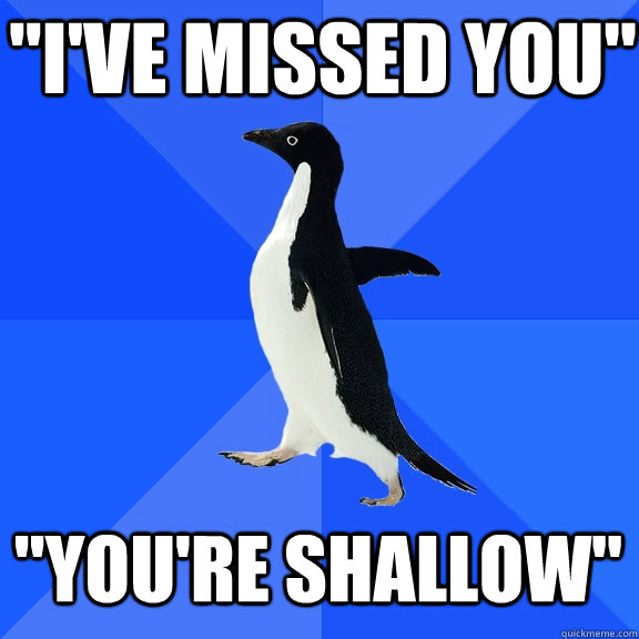 "I've missed you" "You're shallow"