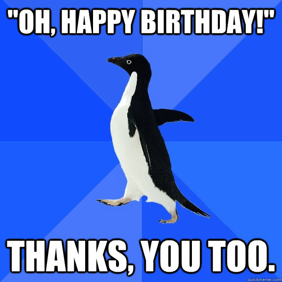 "Oh, happy birthday!" Thanks, you too.