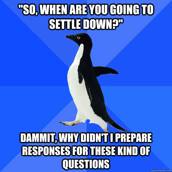 "so, when are you going to settle down?" dammit, why didn't I prepare responses for these kind of questions