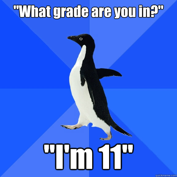 "What grade are you in?" "I'm 11"