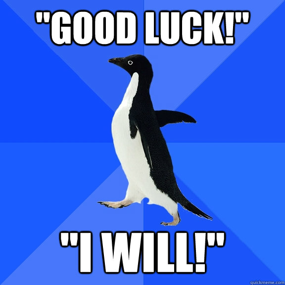 "good luck!" "i will!"