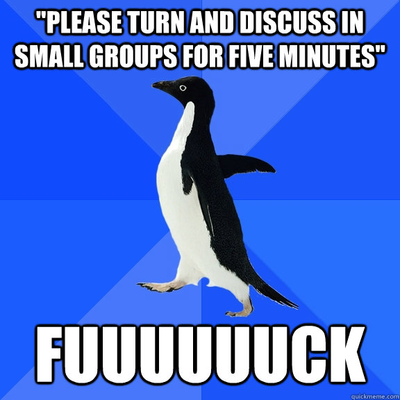 "please turn and discuss in small groups for five minutes" fuuuuuuck