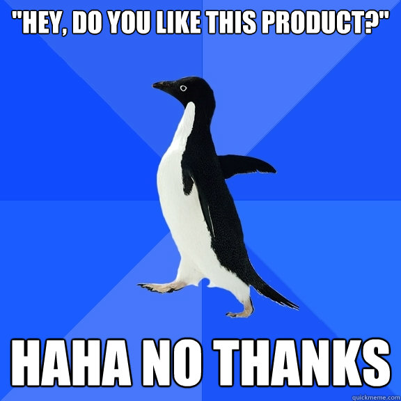 "hey, do you like this product?" HAHA NO THANKS