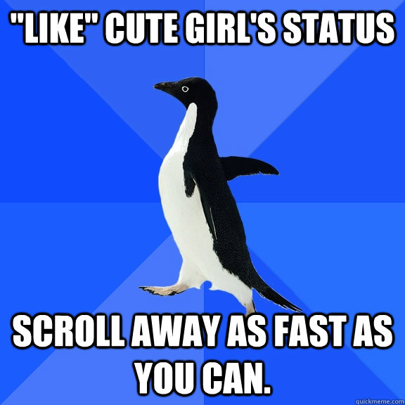 "like" cute girl's status scroll away as fast as you can.
