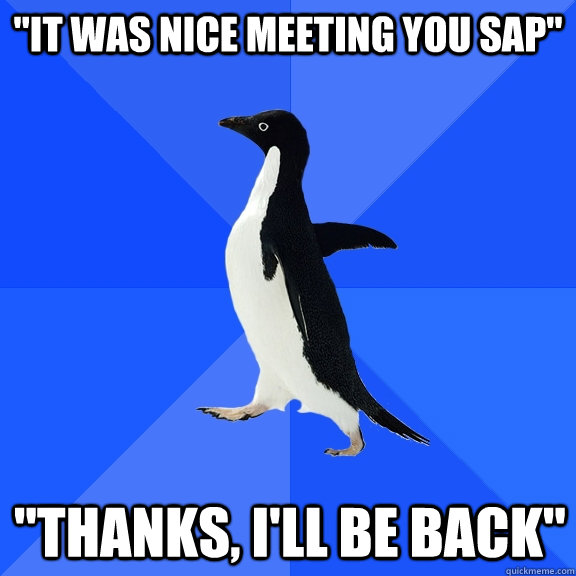 "It was nice meeting you SAP" "Thanks, I'll be back"