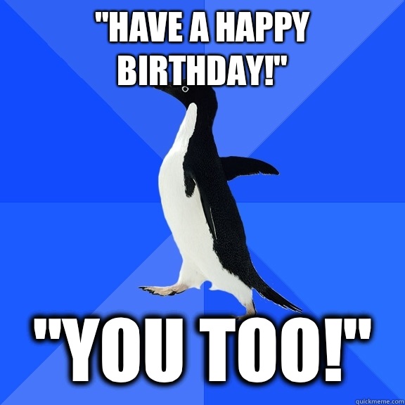 "Have a happy birthday!" "You too!"