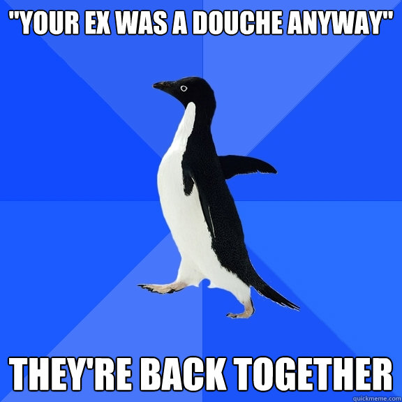 "your ex was a douche anyway" they're back together