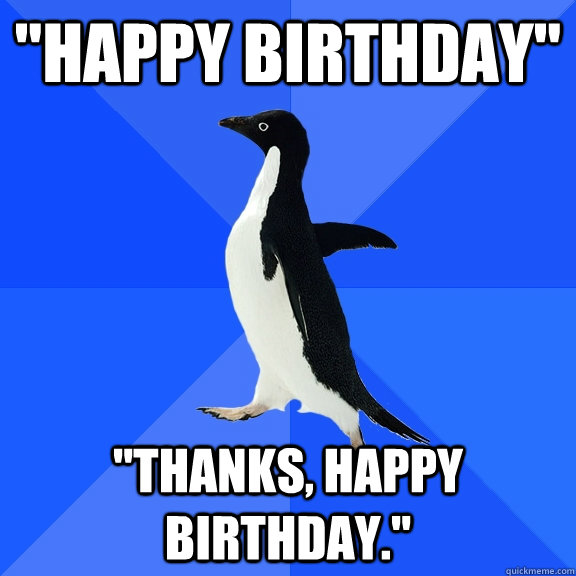 "Happy Birthday" "THANKS, HAPPY BIRTHDAY."