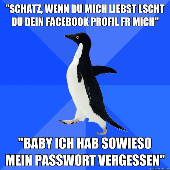 "schatz, wenn du mich liebst löscht du dein facebook profil für mich" "baby ich hab sowieso mein passwort vergessen"