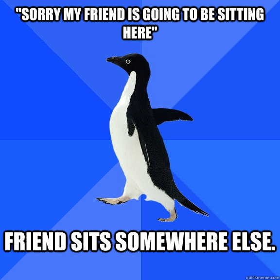 "Sorry my friend is going to be sitting here" Friend sits somewhere else.
