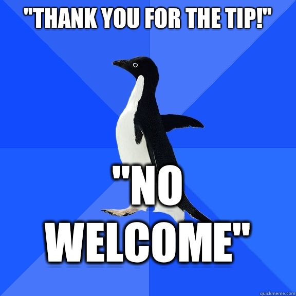 "Thank you for the tip!" "No welcome"