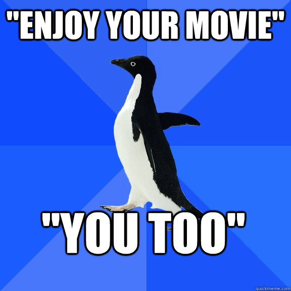 "Enjoy your movie" "You Too"