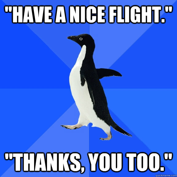 "Have a nice flight." "Thanks, you too."