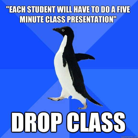 "each student will have to do a five minute class presentation" drop class