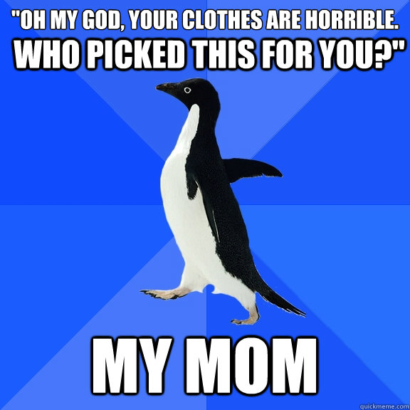 "OH MY GOD, YOUR CLOTHES ARE HORRIBLE. WHO PICKED THIS FOR YOU?" MY MOM