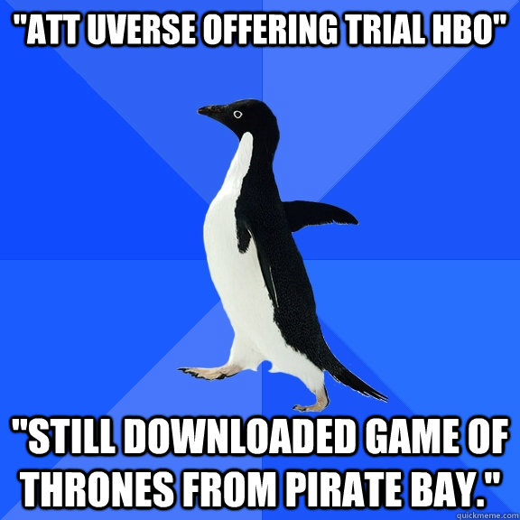 "ATT uverse offering trial HBO" "Still downloaded Game of Thrones from Pirate Bay."