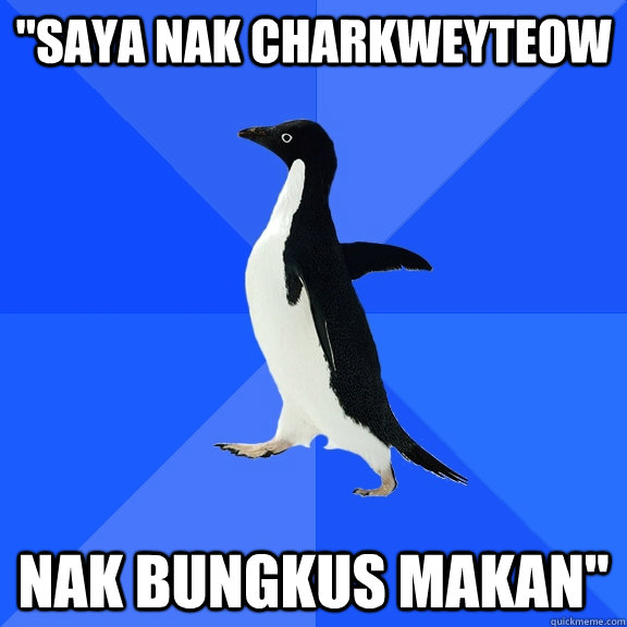 "Saya nak charkweyteow nak bungkus makan"