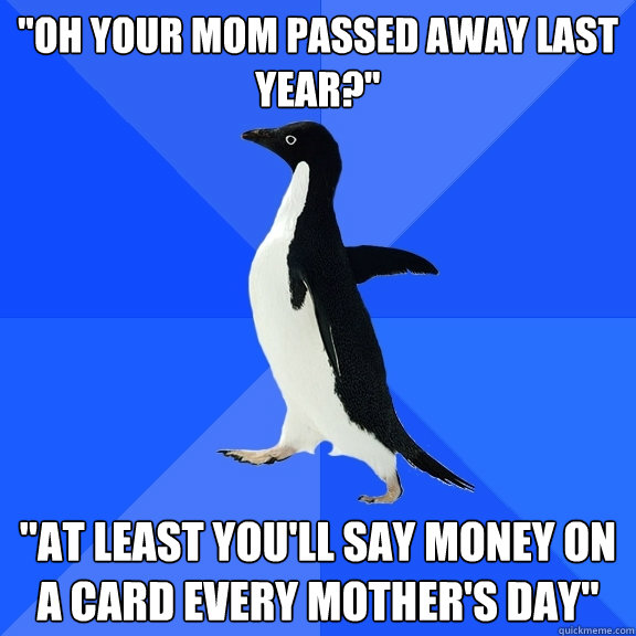 "Oh your mom passed away last year?" "At least you'll say money on a card every Mother's Day"