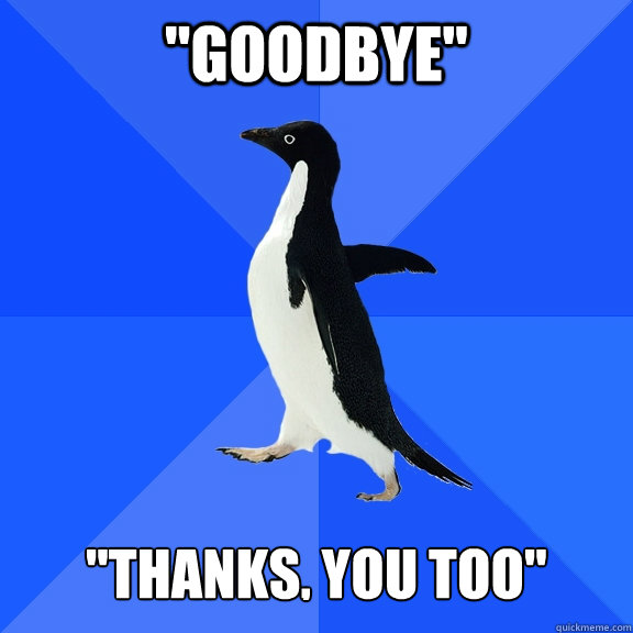 Wants to say hello to two friends deep in conversation Hovers silently over their shoulders for 2 minutes until they notice