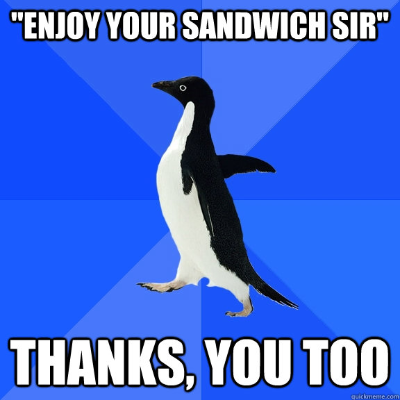 "ENJOY YOUR SANDWICH SIR" THANKS, YOU TOO