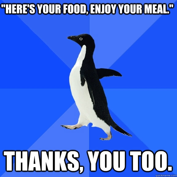 Present awkward social penguin to cute jew "Haha, I think you just make these" RUN