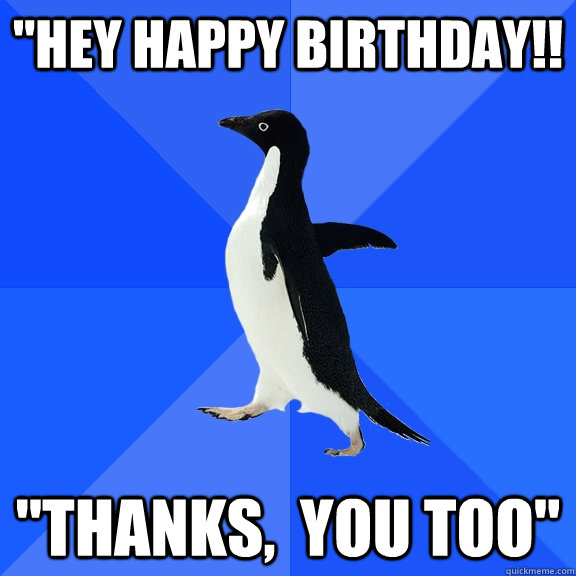 "Hey happy birthday!! "Thanks, you too"