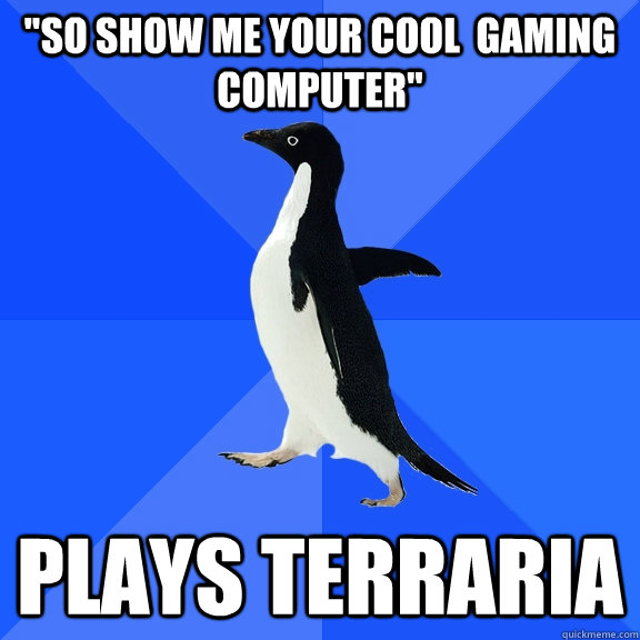 "So show me your cool gaming computer" plays terraria