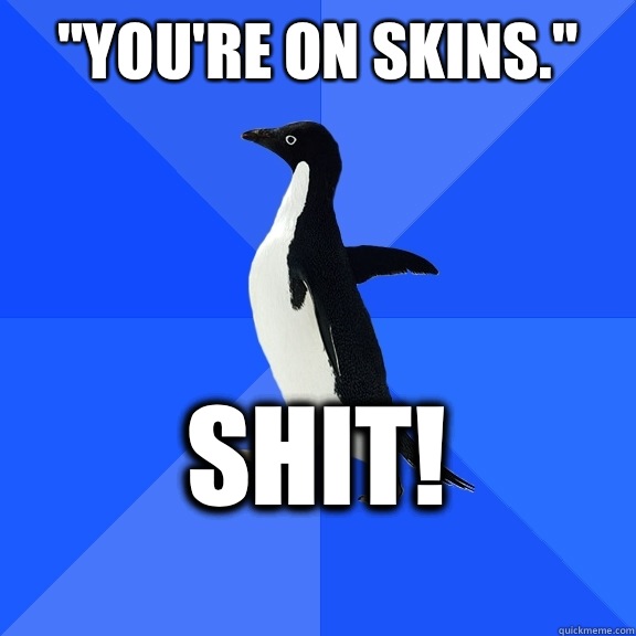 "You're on skins." Shit!