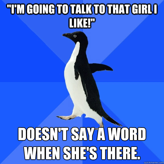 "I'm going to talk to that girl i like!" Doesn't say a word when she's there.