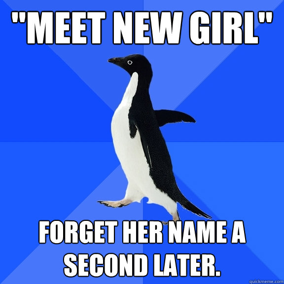 "meet new girl'' forget her name a second later.