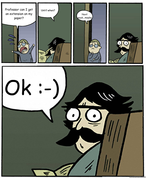 Professor can I get an extension on my paper? Until when? Next week...maybe Ok :-)