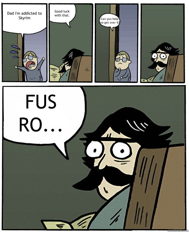 Dad I'm addicted to Skyrim Good luck with that. Can you help me get over it? FUS RO...