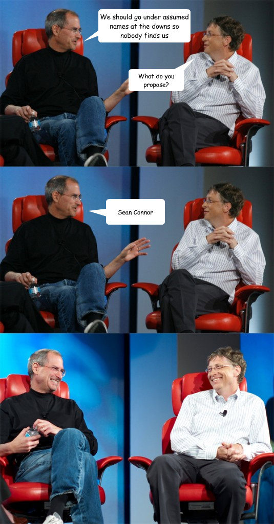 We should go under assumed names at the downs so nobody finds us What do you propose? Sean Connor