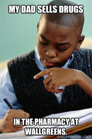 My Dad sells drugs In the pharmacy at Wallgreens.