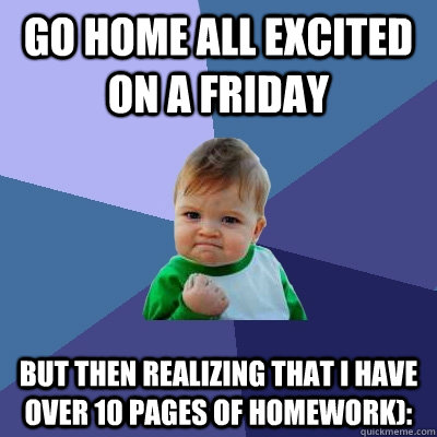 Go home all excited on a friday but then realizing that i have over 10 pages of homework):
