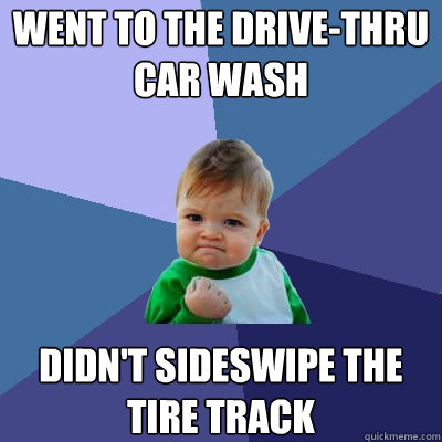 WENT TO THE DRIVE-THRU CAR WASH DIDN'T SIDESWIPE THE TIRE TRACK