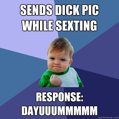 Sends dick pic while sexting Response: DAYUUUMMMMM