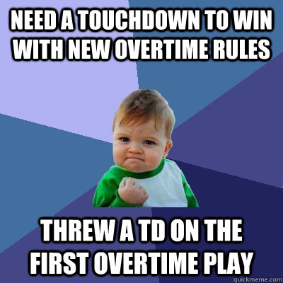 Need a touchdown to win with new overtime rules Threw a TD on the first overtime play