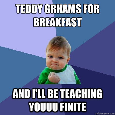 Teddy grhams for breakfast and I'll be teaching youuu finite