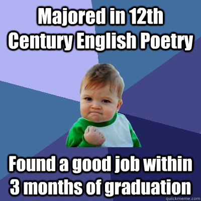 Majored in 12th Century English Poetry Found a good job within 3 months of graduation
