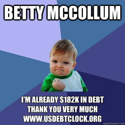 Betty McCollum I'm already $182K in debt thank you very much www.usdebtclock.org