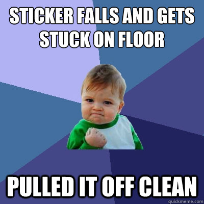 Sticker falls and gets stuck on floor pulled it off clean