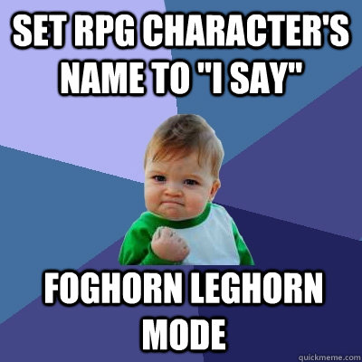Set RPG character's name to "I say" Foghorn Leghorn mode