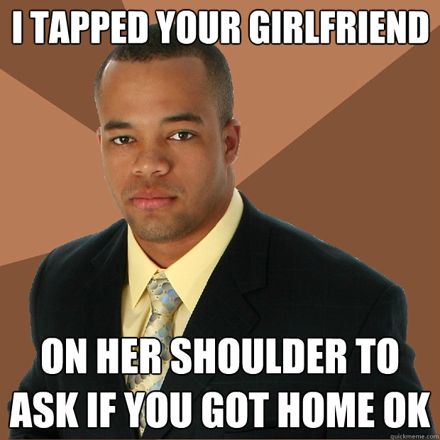 I TAPPED YOUR GIRLFRIEND ON HER SHOULDER TO ASK IF YOU GOT HOME OK
