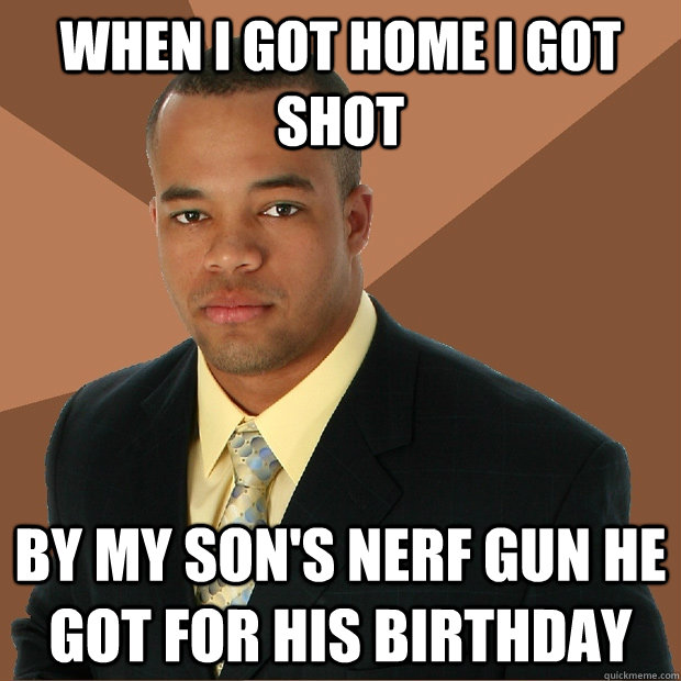 When i got home i got shot by my son's nerf gun he got for his birthday