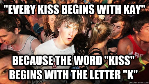"Every kiss begins with Kay" Because the word "Kiss" begins with the letter "K"